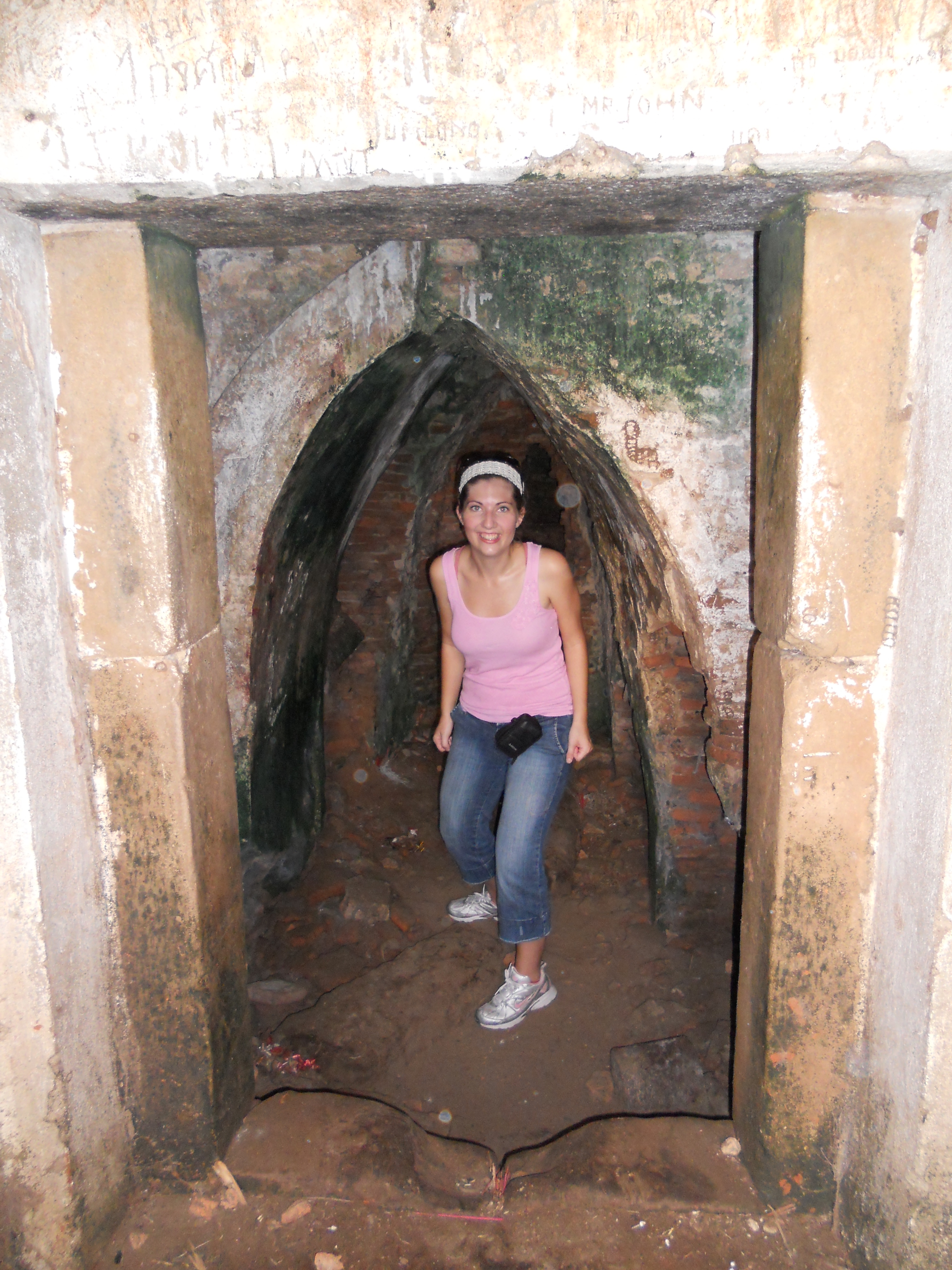 Inside one of the chedis of Wat Phra Si Sanphet. Holding my breath, but smiling :).