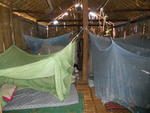 Our guide led our group to a separate cabin at the top next to the village where we’d be staying: a two-room house full of thin mattresses, blankets and mosquito nets. Delightfully rustic! Then it was time for showers. I swear to you, if it wasn’t for the fact that I was covered in sweat and dirt, I’m not sure I could have done it. Even Josh, Mr. I-Don’t-Mind-Cold-Showers-They’re-Refreshing, found the liquid ice coming from the outdoor, wooden stalls to be a bit too refreshing. I think they were the quickest showers anyone in our group had ever taken! 🙂